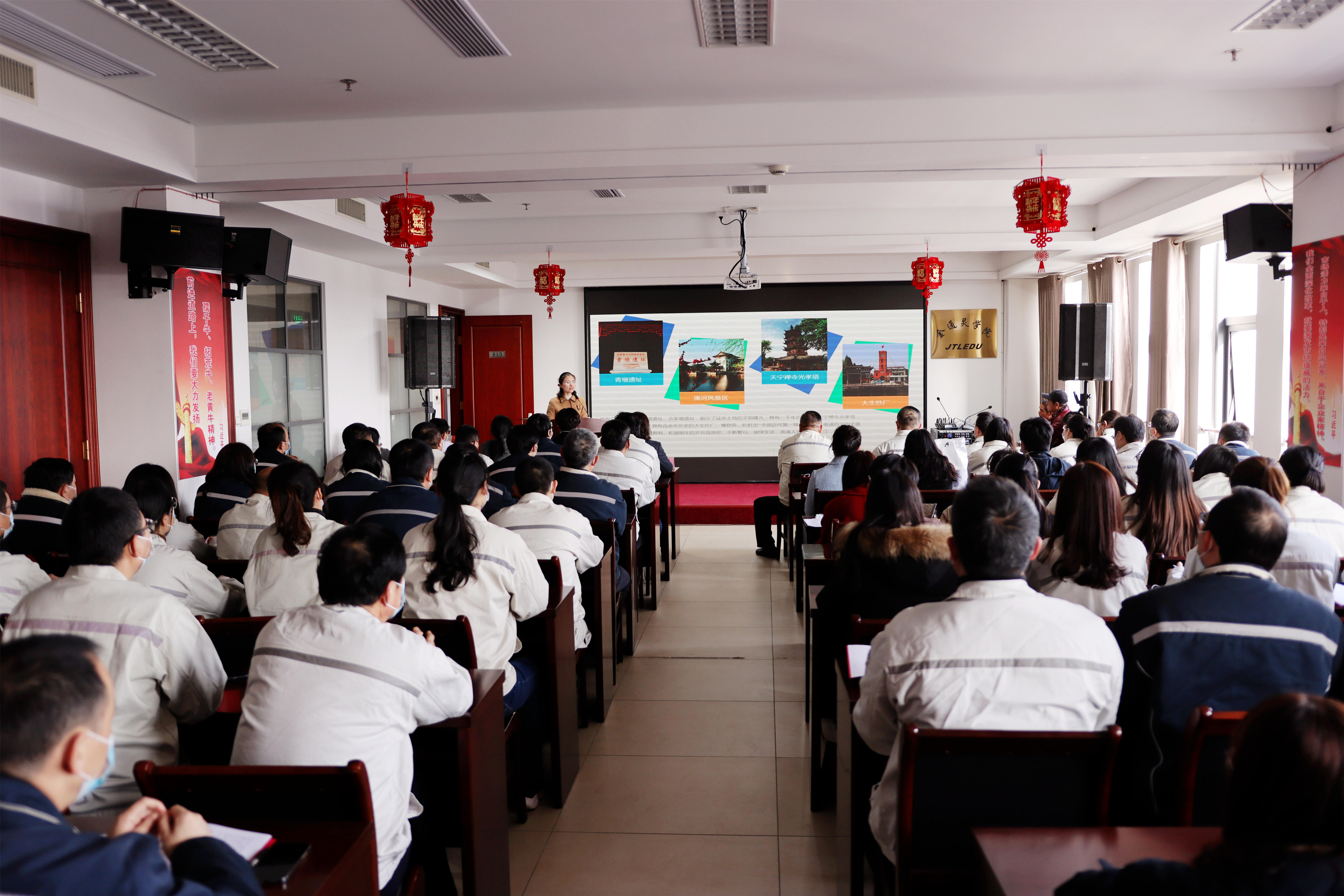 紅色的燈籠帶著節日的余溫與暖心的“習語金句”一起裝點著會場的氛圍,臺上宣講員循循善誘,為金通靈職工帶來滿滿理論“干貨”;臺下聽眾聚精會神,給宣講員們送去陣陣掌聲。2月23日下午,崇川區“學習貫徹習近平總書記視察江蘇重要講話精神”宣講團首場宣講活動在金通靈學院內成功舉辦。