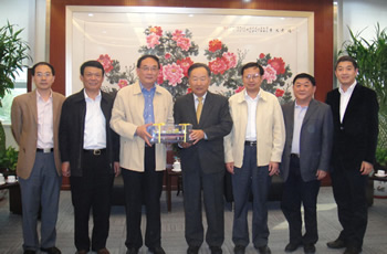 中海油總公司向南通市政府贈送紀念品,與會領導人員合影留念 |