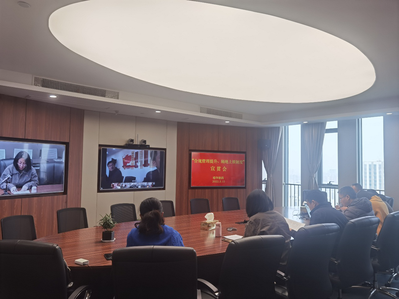 3月10日,精華制藥集團在總部大樓24層視頻會議室召開《關于開展合規管理提升年活動的通知》及《檢維修能量隔絕上鎖掛牌制度》的宣貫會。各分、子公司生產分管負責人、質量分管負責人、安全分管負責人、生產部門負責人、質量部門負責人、安全部門負責人及相關人員視頻參會。