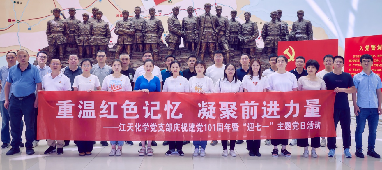 為慶祝中國共產(chǎn)黨成立101周年,根據(jù)公司黨支部的統(tǒng)一安排,6月26日,江天化學(xué)黨支部黨員、預(yù)備黨員、發(fā)展對(duì)象、入黨積極分子以及入黨申請(qǐng)人赴海安蘇中七戰(zhàn)七捷紀(jì)念館和如皋紅十四軍紀(jì)念館開展以“重溫紅色記憶 凝聚前進(jìn)力量”為主題的“迎七一”主題黨日活動(dòng)。