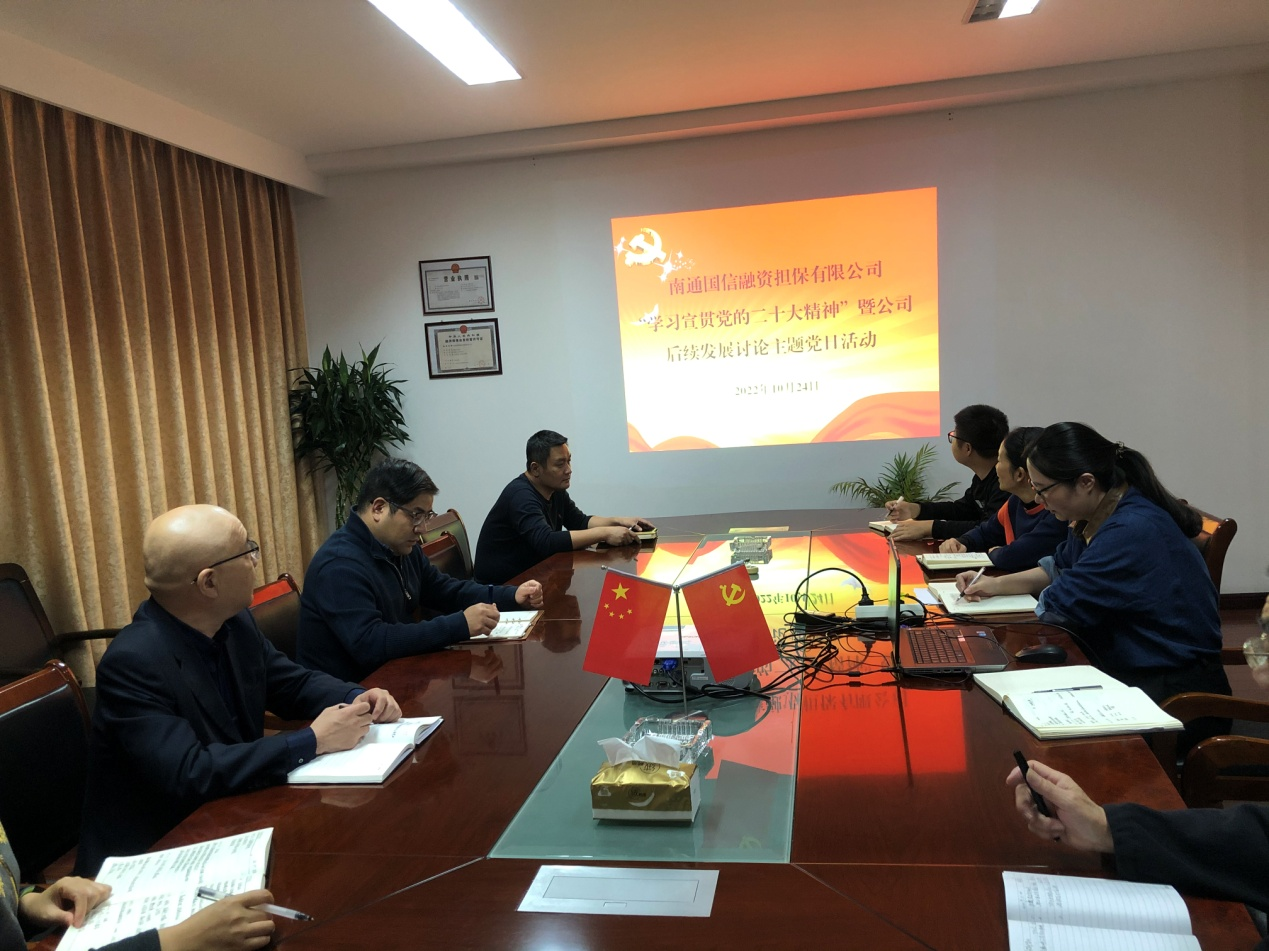 10月24日下午,國信擔保公司黨支部組織開展了“學習宣貫黨的二十大精神”暨公司后續發展討論主題黨日活動,公司全體工作人員參加了活動。