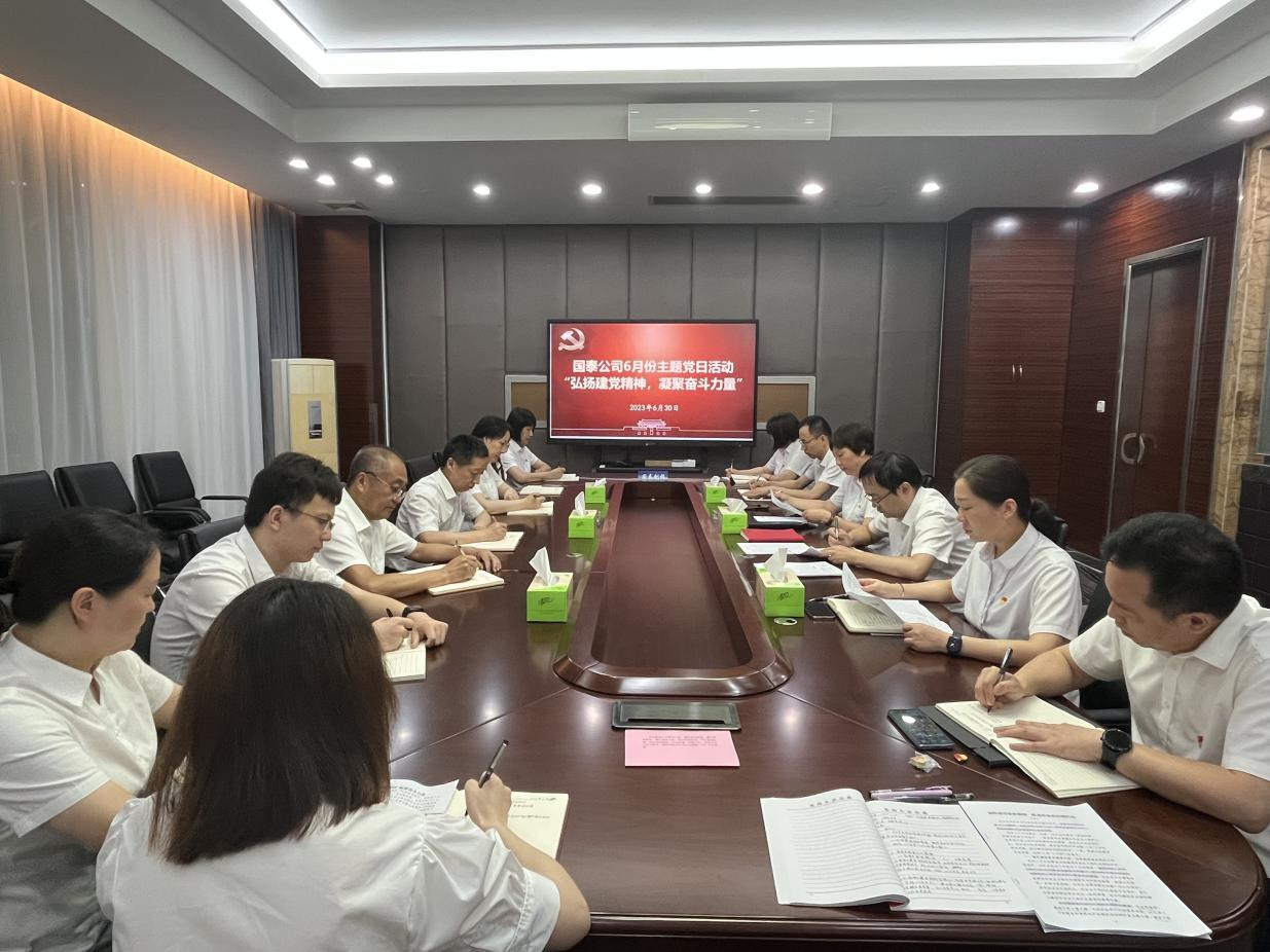 為深入貫徹落實黨的二十大精神和習近平新時代中國特色社會主義思想,慶祝中國共產黨成立102周年。6月30日,國泰公司黨總支開展“弘揚建黨精神,凝聚奮斗力量”主題黨日活動,國泰公司全體員工參與活動。 學思踐悟新思想 本次主題黨日采取集中學習、交流發言的方式,學習習近平總書記最新重要講話精神、《求是》雜志發表的習近平總書記重要文章內容。2名黨員同志結合實際,作學習體會交流。通過學習,切實把習近平新時代中國特色社會主義思想轉化為堅定理想、錘煉黨性、指導實踐和推動工作的強大力量。